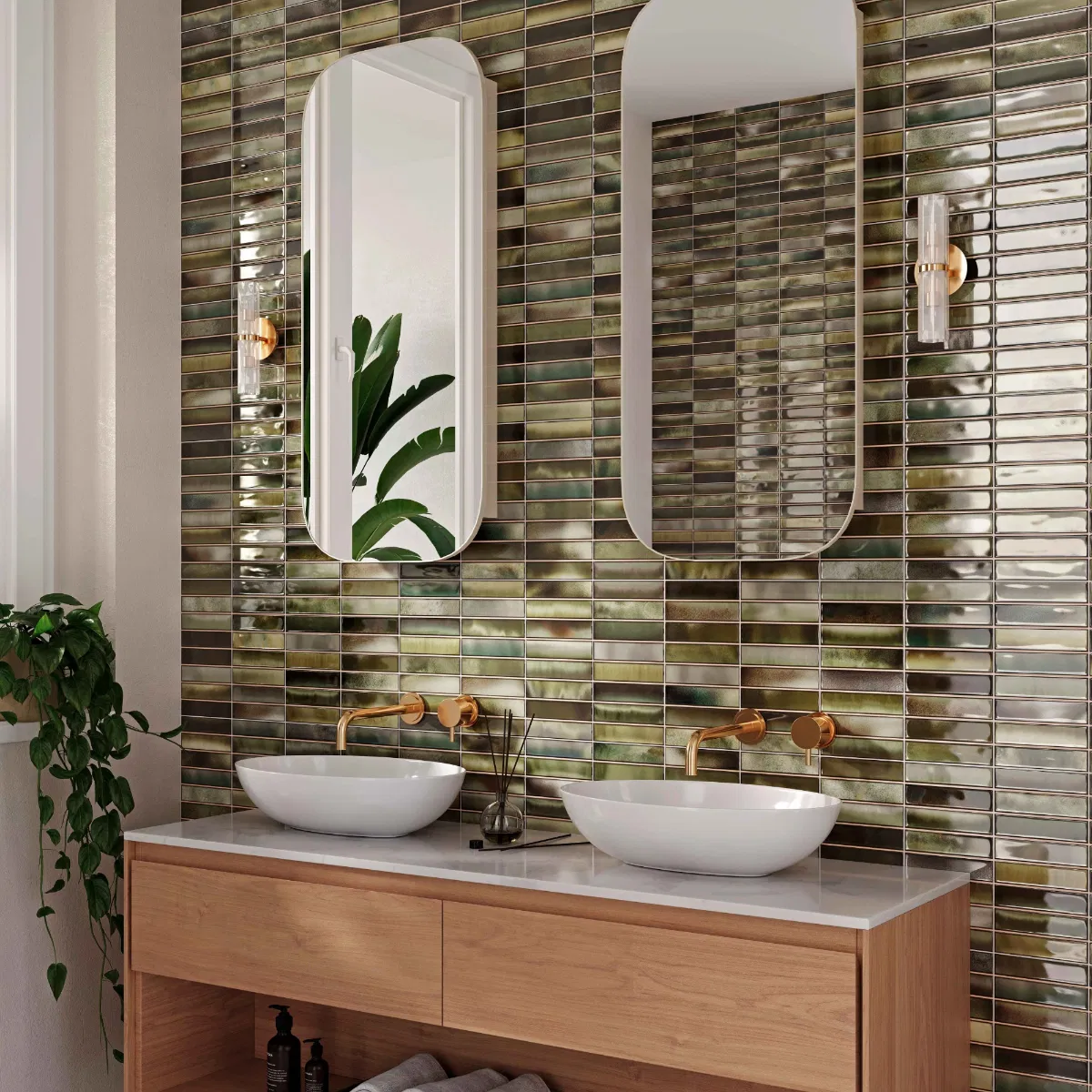Shimmery, rustic, kit-kat effect ceramic tiles with a glossy finish, available in four on trend shades. Comprising of 25 different print faces, the Borealis range gives real character to any space it is used in. Suitable for walls only.